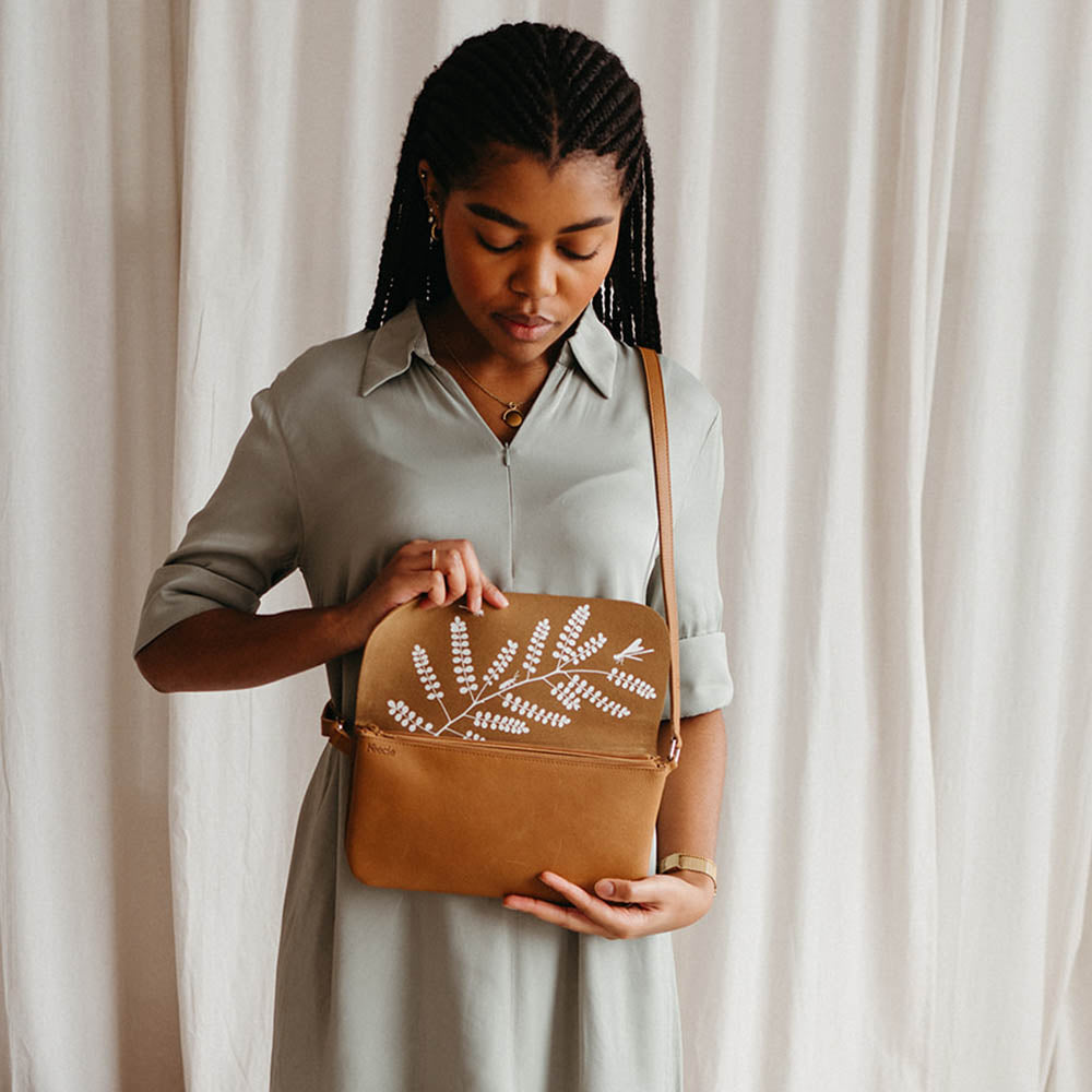 Unsere zeitlose Crossbody-Tasche mit einer Geschichte