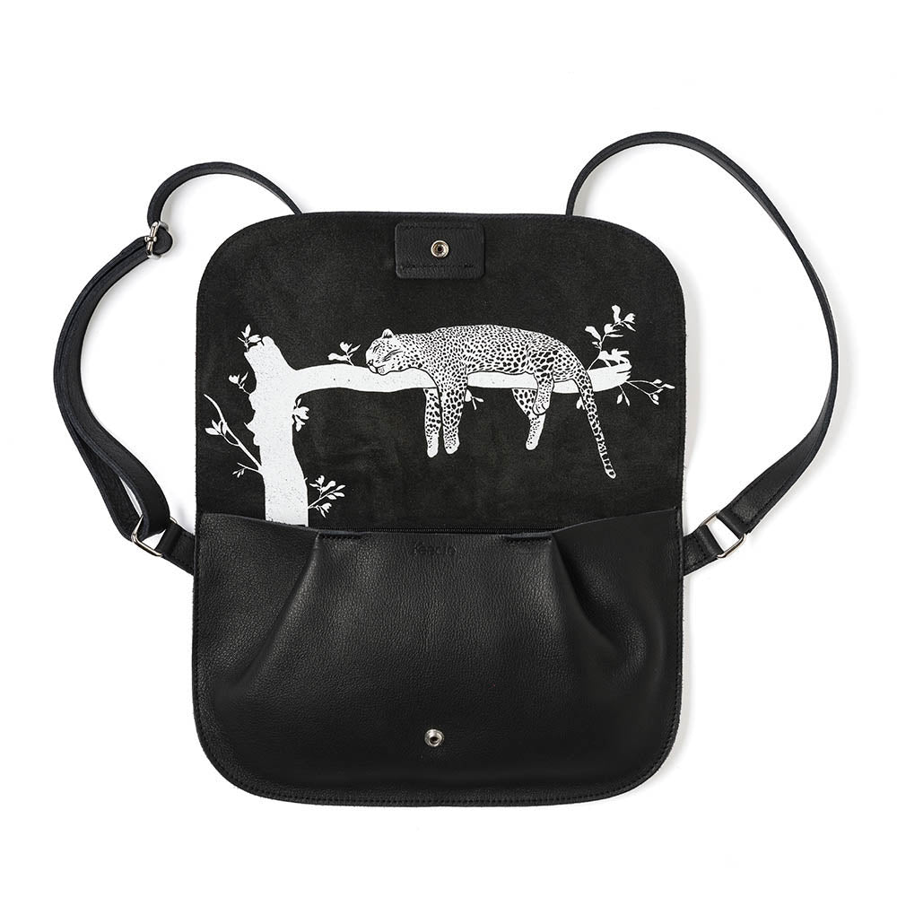 - im Inneren ein Siebdruck eines Leoparden