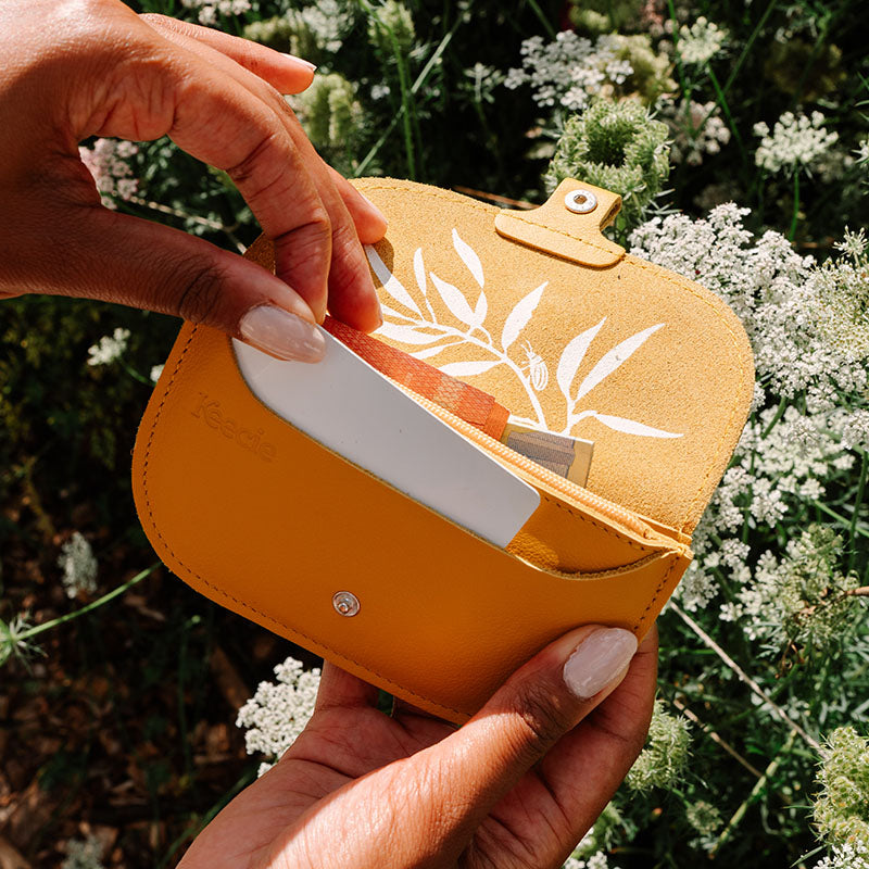Von der Größe her erinnert es an unser beliebtes Cat Chase Small Portemonnaie. Du bist kein Katzenfan, liebst aber die feine Handwerkskunst von Keecie? Dann ist die Bless You dein idealer kleiner Begleiter.