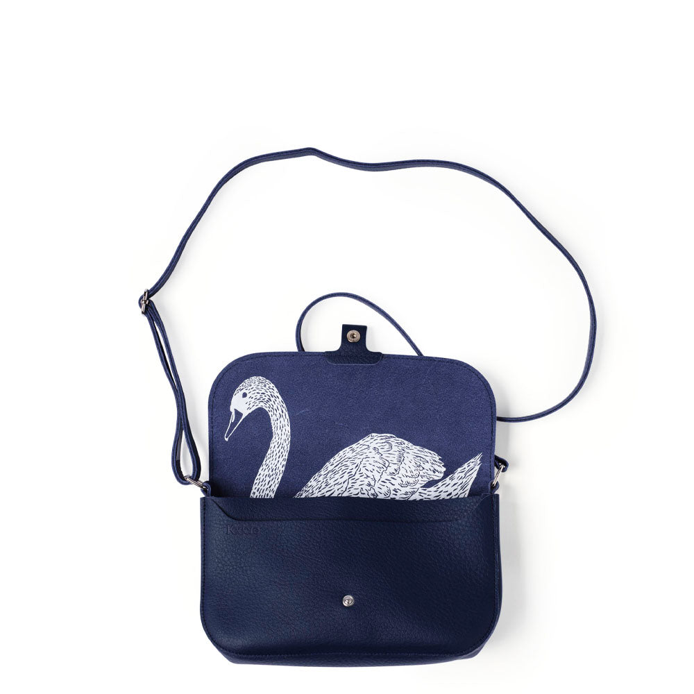 Wild Swan ist eine mittelgroße Crossbody-Handtasche, die praktischen Nutzen mit stilvollem Aussehen kombiniert. Diese Damentasche begleitet Sie durch den Alltag, zu abendlichen Veranstaltungen und zu entspannten Tagestrips. Im Inneren finden Sie einen einzigartigen Keecie-Print mit einem Schwan, der zu Ihrem stillen Begleiter wird.