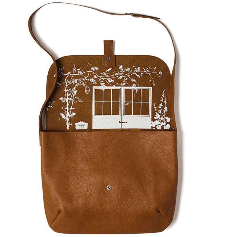 Wir haben unseren Traumarbeitsplatz auf der Innenseite dieser Tasche abgebildet. Wie schön wäre es, morgens mit einer Tasse Kaffee in der Hand in den Garten zu gehen und sich in diesem romantischen Gartenhaus an die Arbeit zu machen.