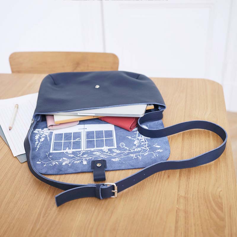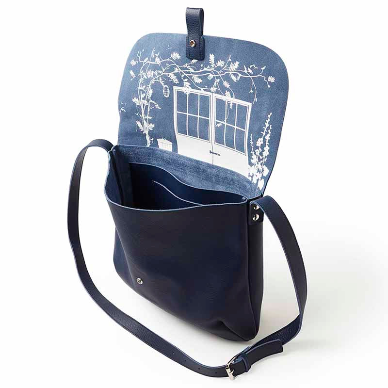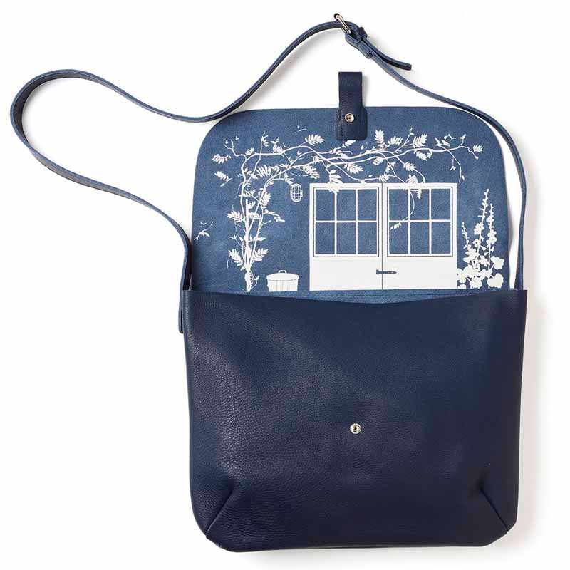 Wir haben unseren Traumarbeitsplatz auf der Innenseite dieser Tasche abgebildet. Wie schön wäre es, morgens mit einer Tasse Kaffee in der Hand in den Garten zu gehen und sich in diesem romantischen Gartenhaus an die Arbeit zu machen.