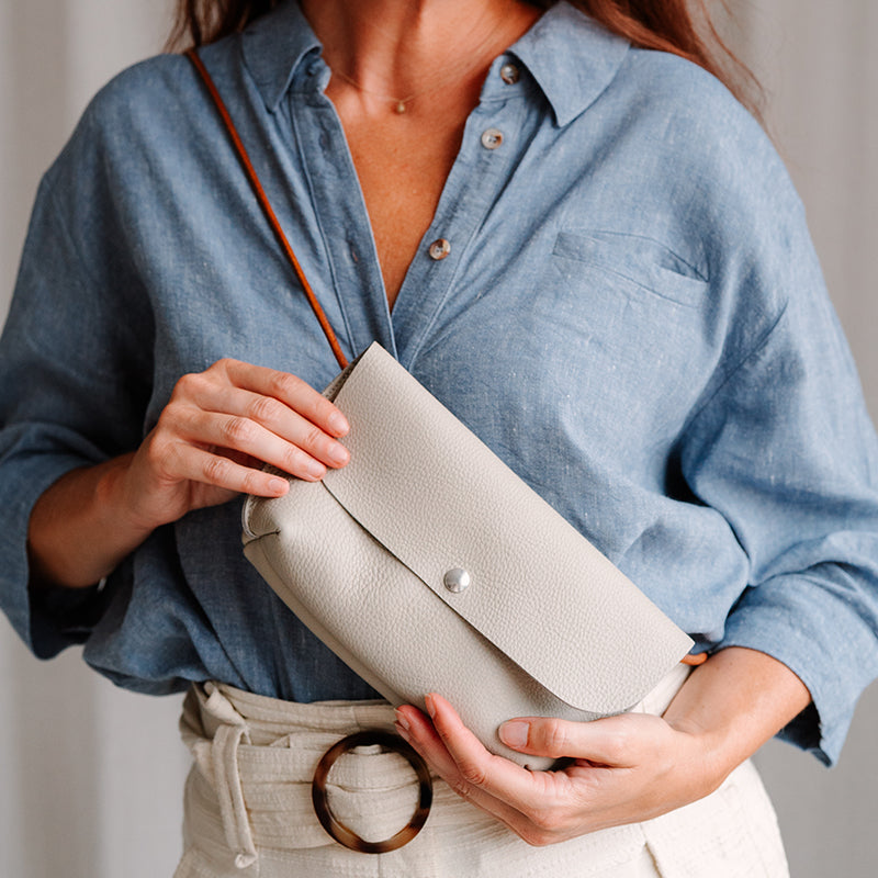 Mit unserer Secret Garden Handtasche ziehst du alle Blicke auf dich – ob auf einem Festival, bei einem Abend mit Freunden oder einfach an einem ganz normalen Wochentag. Der Schulterriemen besteht aus einem weichen Lederband und der Boden der Tasche wurde in unserem Nähatelier auf raffinierte Weise gefertigt. Das verleiht der Secret Garden ihren robusten und zugleich eleganten Look.