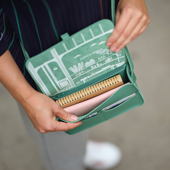Lunch Break ist die Ledertasche für Ihre schönste Zeit des Tages. Eine praktische Tasche für Damen in der Größe einer Lunchbox mit einem Siebdruck auf der Innenseite, der den hübschen kleinen Lunchroom um die Ecke zeigt. Und so kompakt die Lunch Break auch ist, bietet sie dennoch überraschend viel Platz. Wie bei jeder Keecie-Tasche achten wir nicht nur auf ein schönes Äußeres, sondern auch auf eine praktische Aufteilung. Mit genügend Fächern, um alles verstauen zu können, und einem sicheren Druckknopf am Boden.