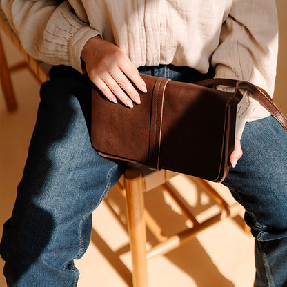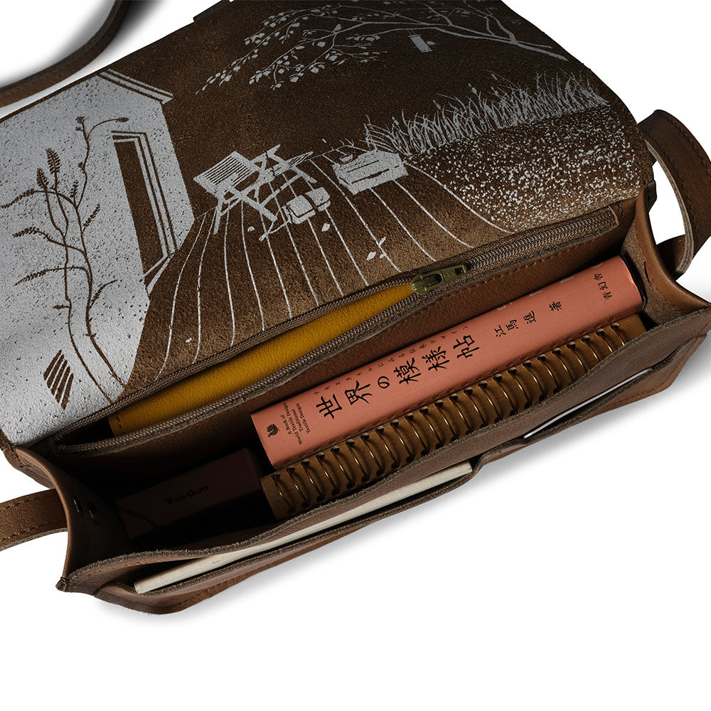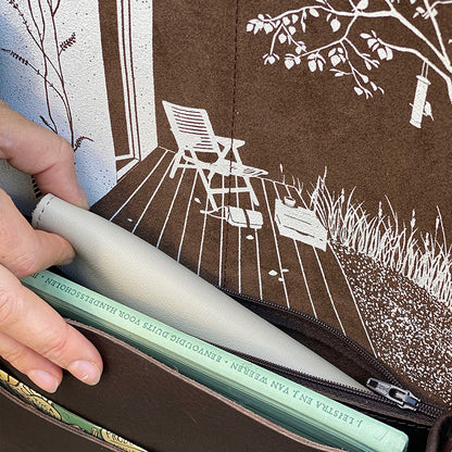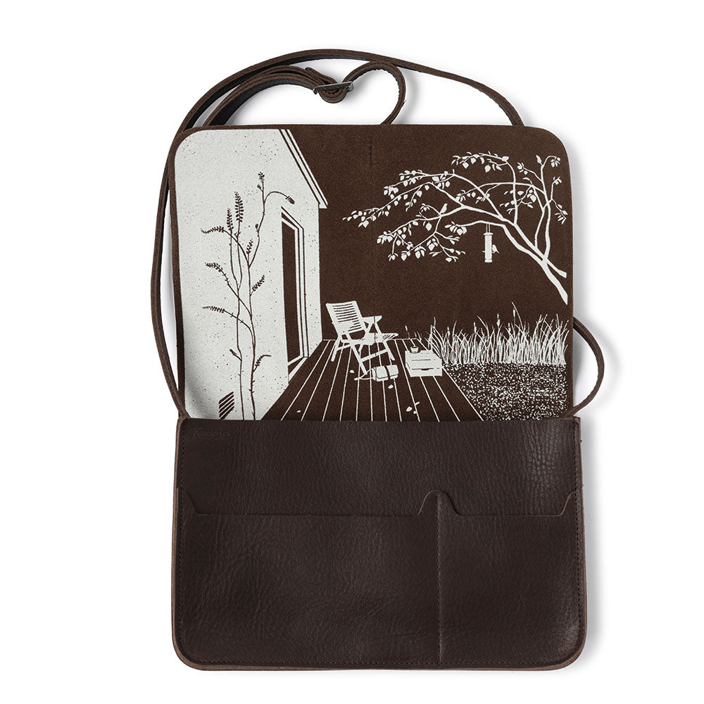 Egal, wie Ihr Tag verläuft, mit dieser Lederschultertasche sind Sie immer bereit, um Gott kurz einen lieben Mann sein zu lassen und irgendwo aufzutanken. Schon beim Öffnen der Tasche haben Sie das Gefühl, kurz weg zu sein. Auf der Innenseite versteckt sich nämlich ein herrlich, ruhiger Platz im Garten.