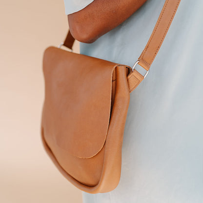 Die extrabreite Vordertasche bietet Ihnen Platz für ein Notizbuch oder lose Papiere. Mit einer großen Klappe mit klassisch abgerundeten Ecken wird die Tasche stilvoll geschlossen.
